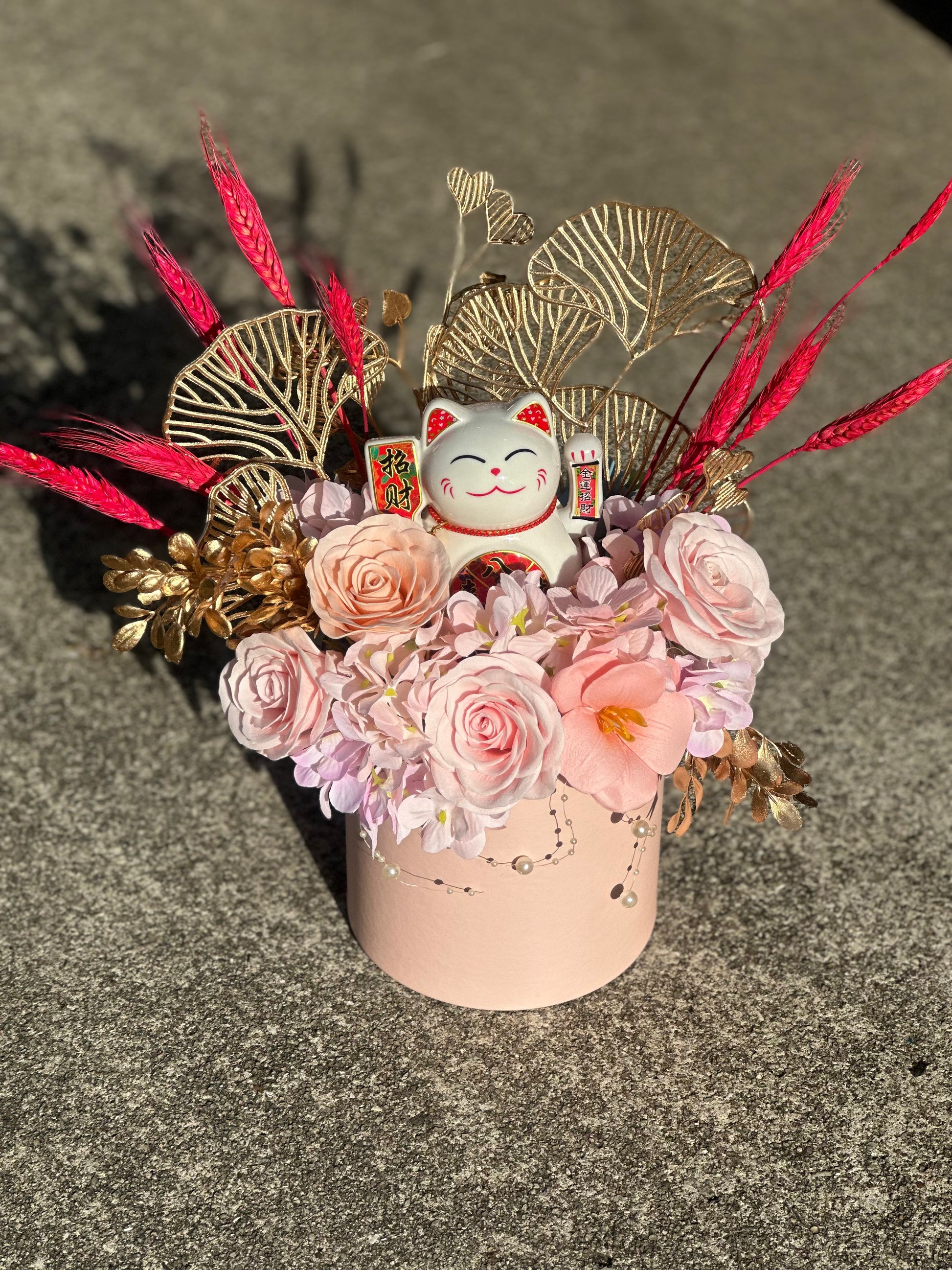 Bring luck, prosperity, and lasting beauty to any new beginning with our Fortune Cat Preserved Flower Arrangement. Featuring an adorable Maneki Neko (Fortune Cat) paired with premium preserved flowers, this arrangement is designed to symbolise wealth, good fortune, and success – making it the perfect gift for grand openings, business launches, and corporate celebrations.