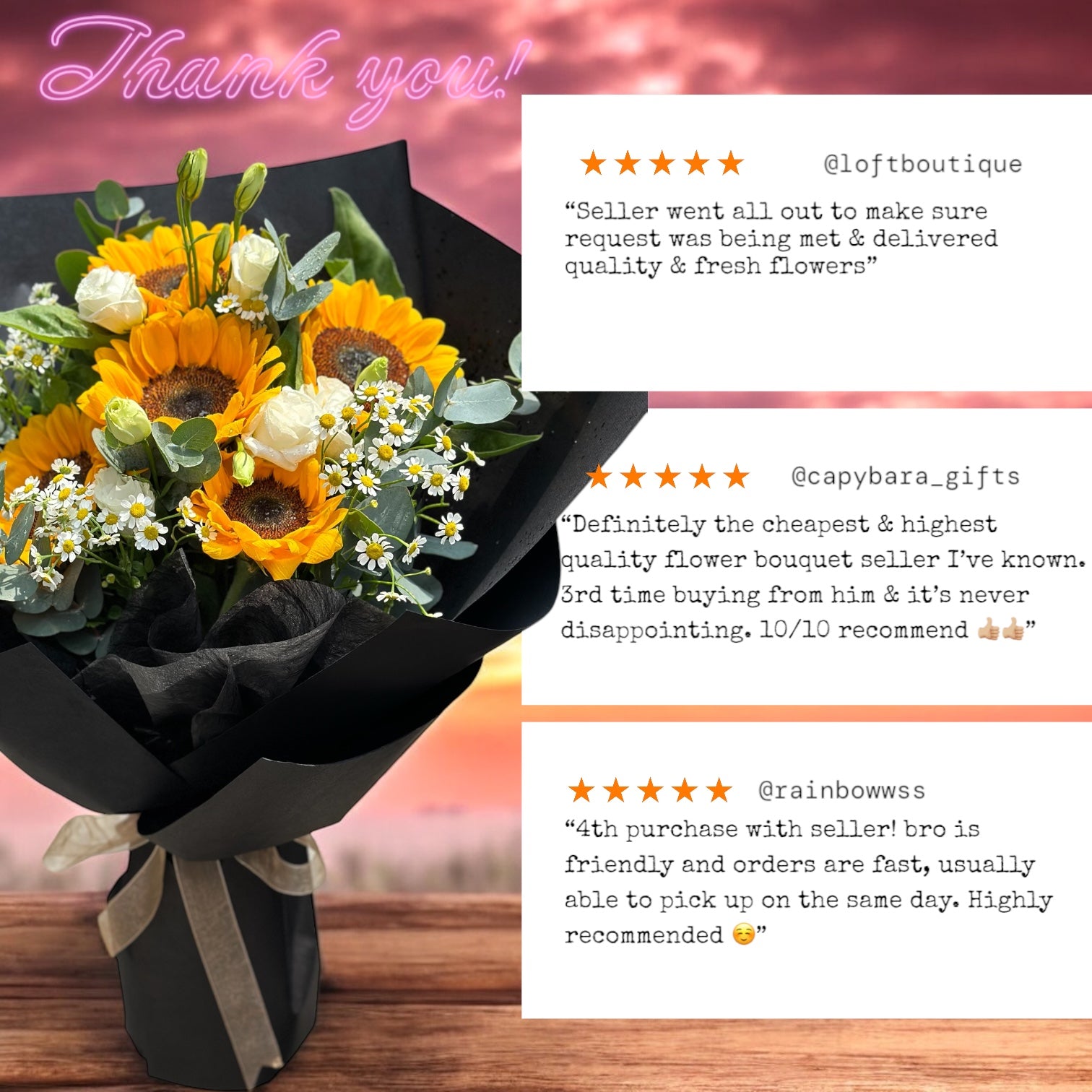 ✨ Arranged with fresh seasonal sunflowers