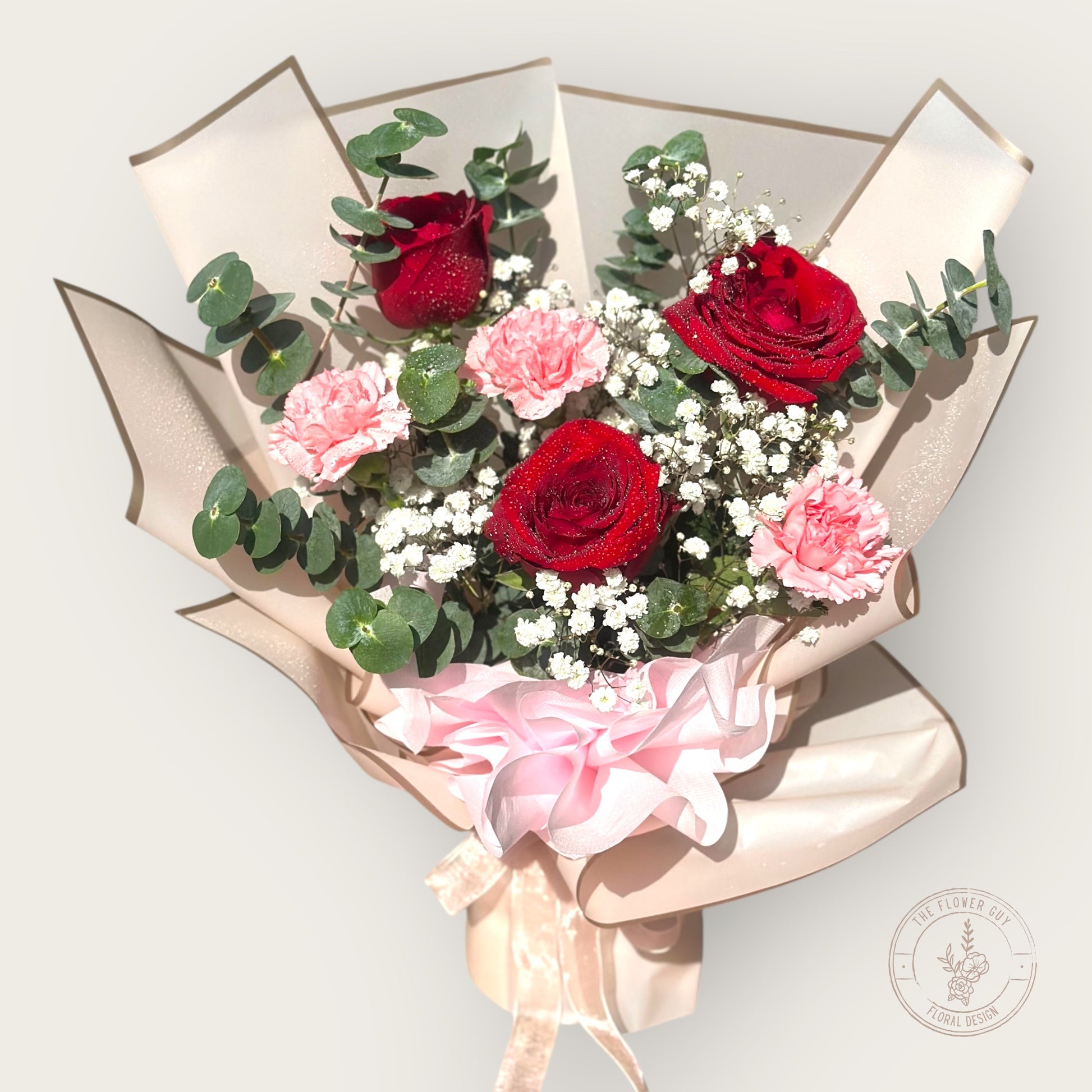 Korean-Style Mixed 6 Stalks Red Roses Pink Carnation Hand Bouquet